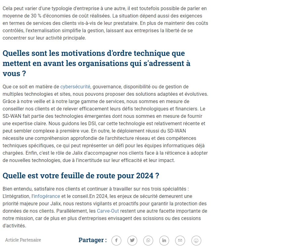 Pour en savoir plus sur l’activité de Jalix, ses clients, ses partenaires, son histoire et ses challenges, vous pouvez nous suivre sur :